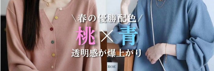 桃と青の配色を取り入れたい方にとって、一枚で洗練されたブルベ夏コーディネートが完成する優秀アイテムです。