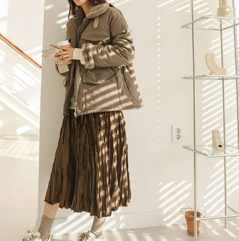 フワフワのボアライナーで保温性が高く、カジュアルながら女性らしい雰囲気を演出できる一着。