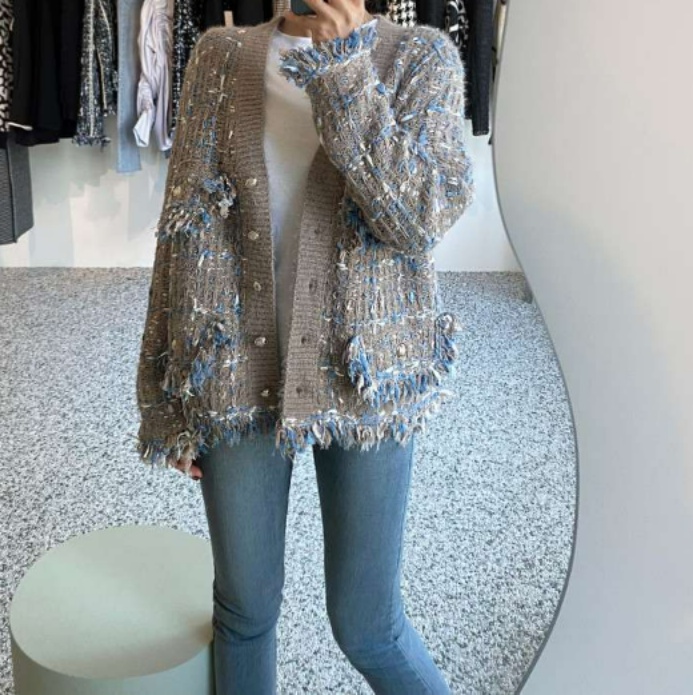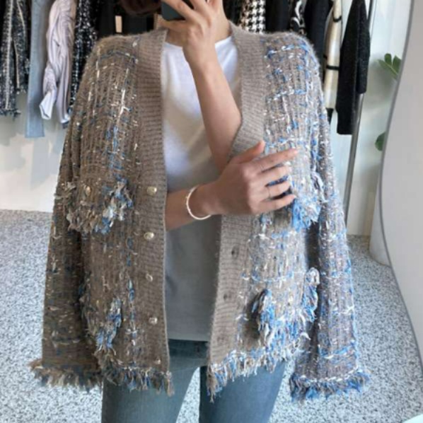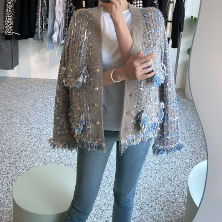 ツイード素材にフリンジの装飾を施した上品な印象のジャケット♪