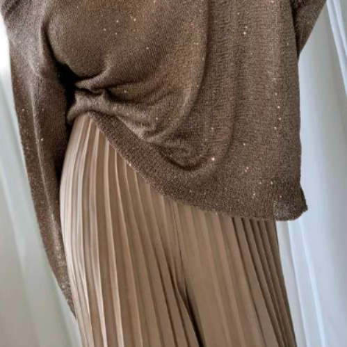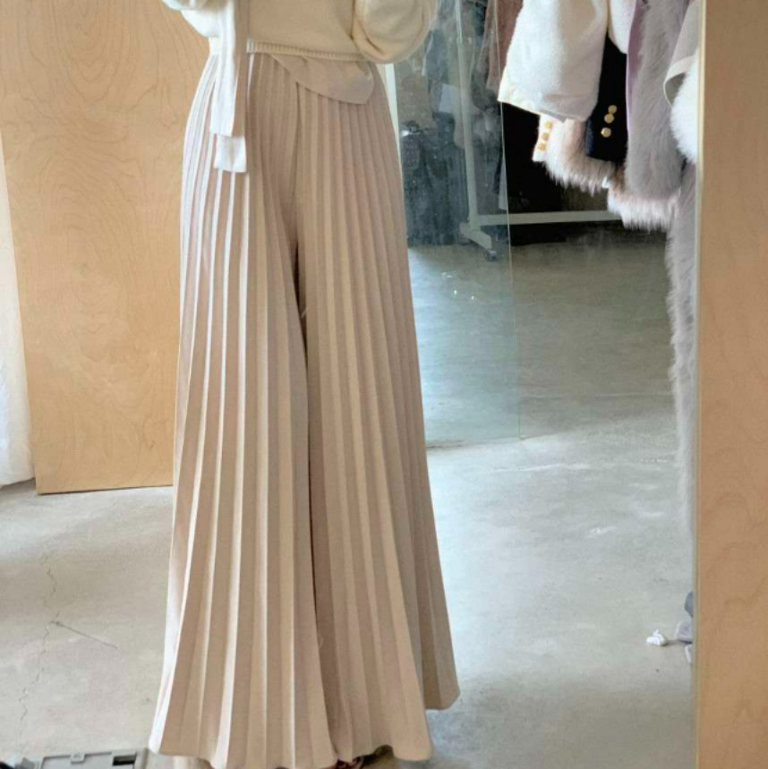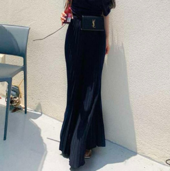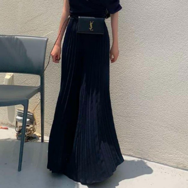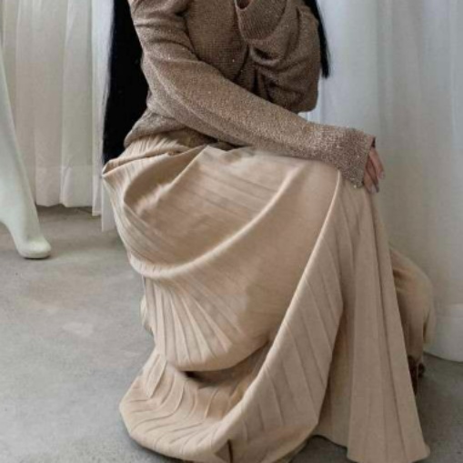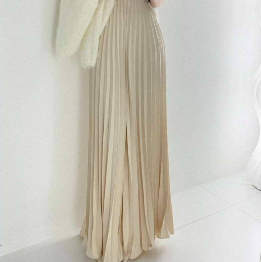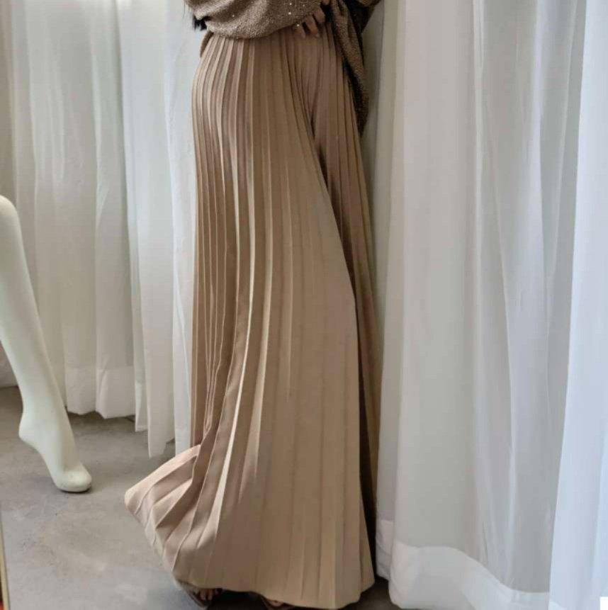 細かいプリーツが施されており、歩くたびに優雅な動きを演出する上質な仕立て