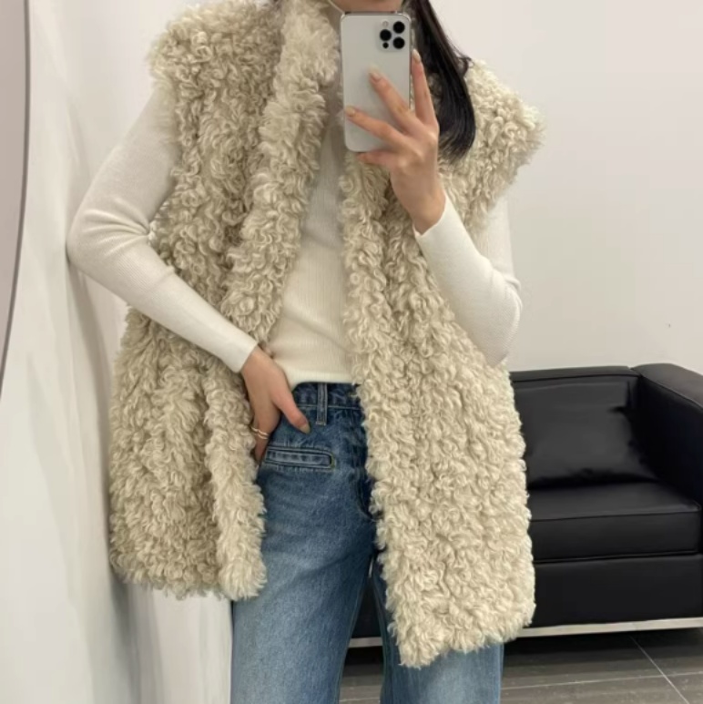 ふわふわの質感が特徴的な贅沢なボア素材を使用したロングベスト♪