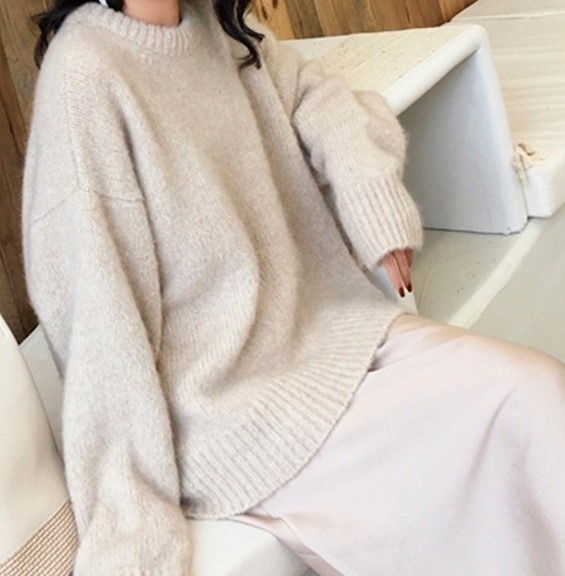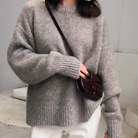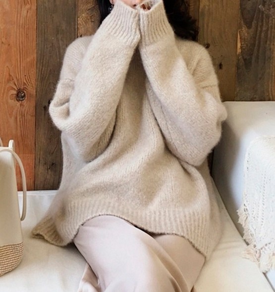 柔らかな肌触りのモヘアタッチ素材を使用したオーバーサイズニット。