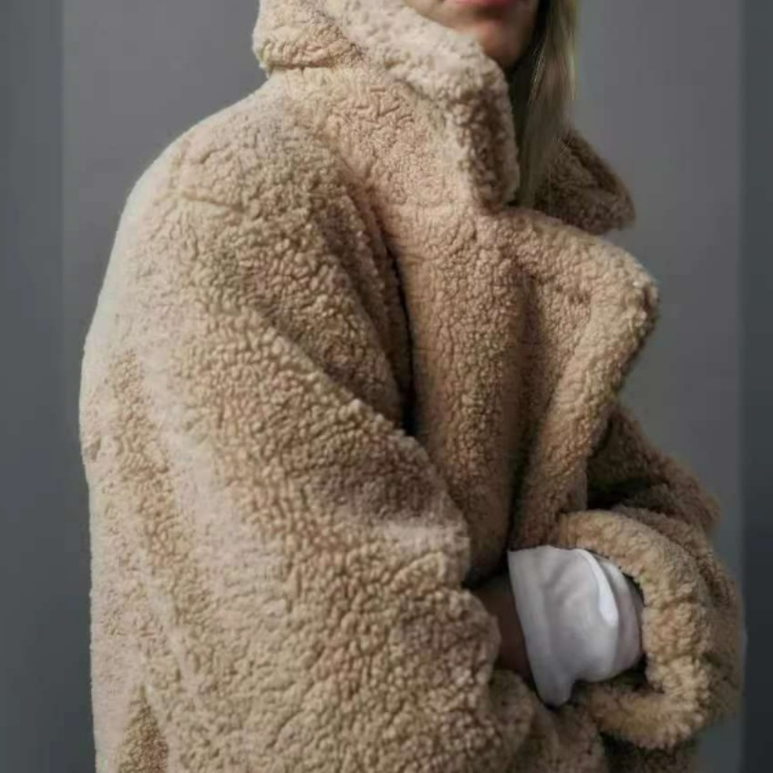 テディベア風の温かみのある素材感で、着心地の良さと可愛らしさを演出