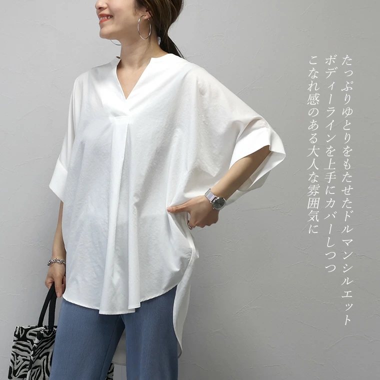 短めの袖丈で夏場も快適に着用できるブラウスは、カジュアルからきれいめまで幅広いコーディネートが楽しめます。