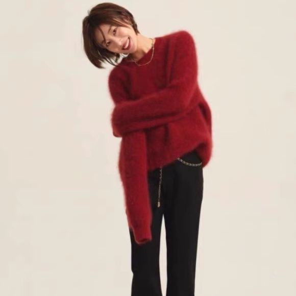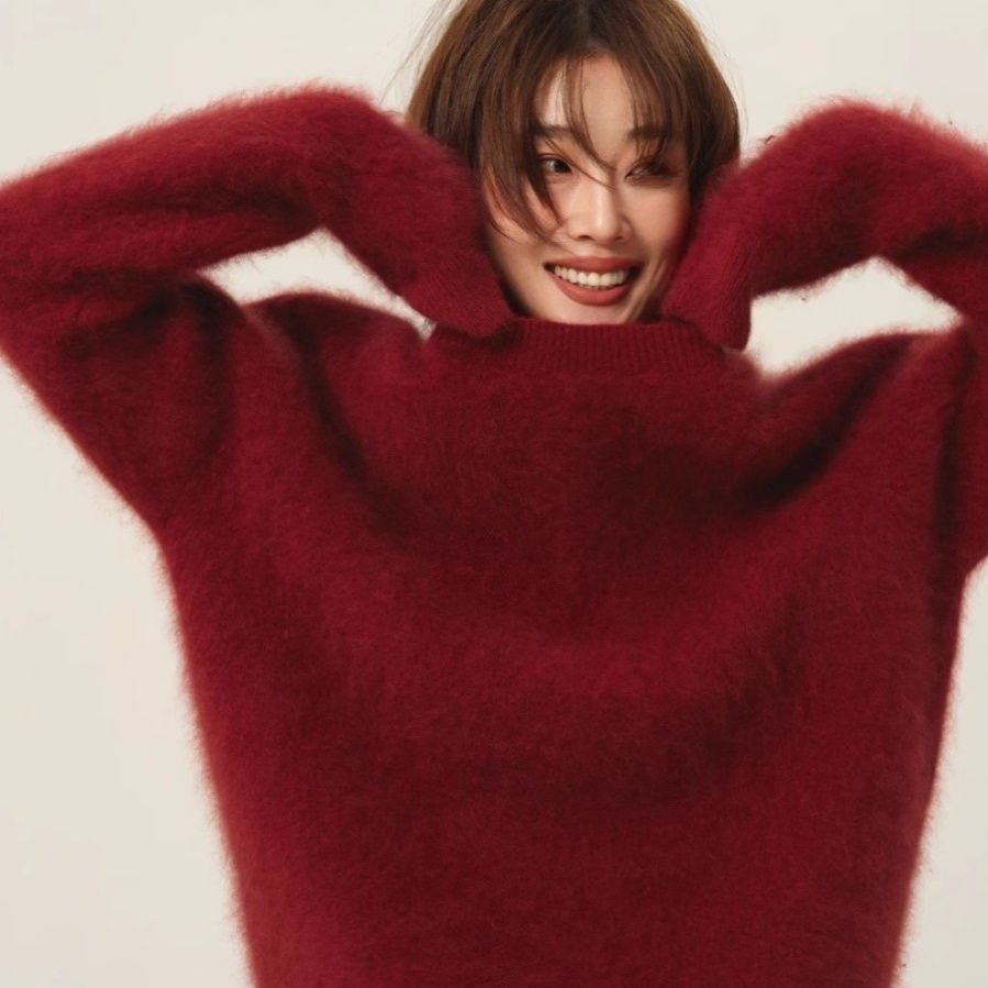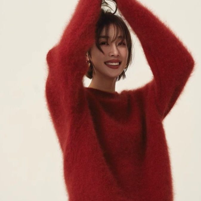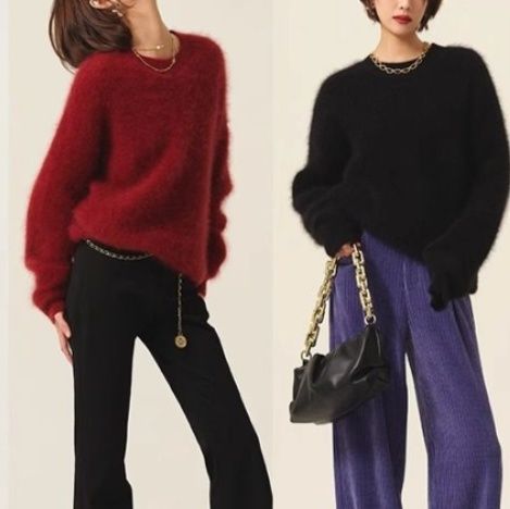 柔らかな起毛感が魅力的なモヘア調のニットです。