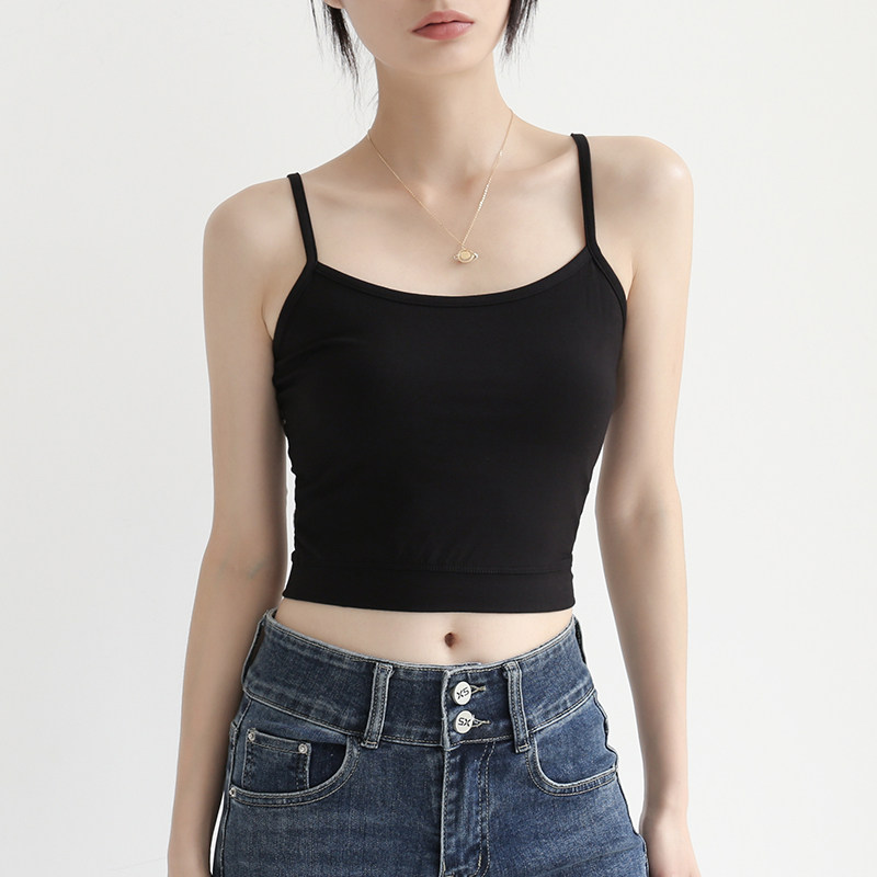 すっきりとしたショート丈デザインで、洗練された印象を与えるキャミソールトップスです。
