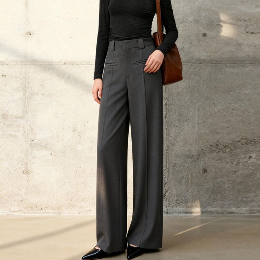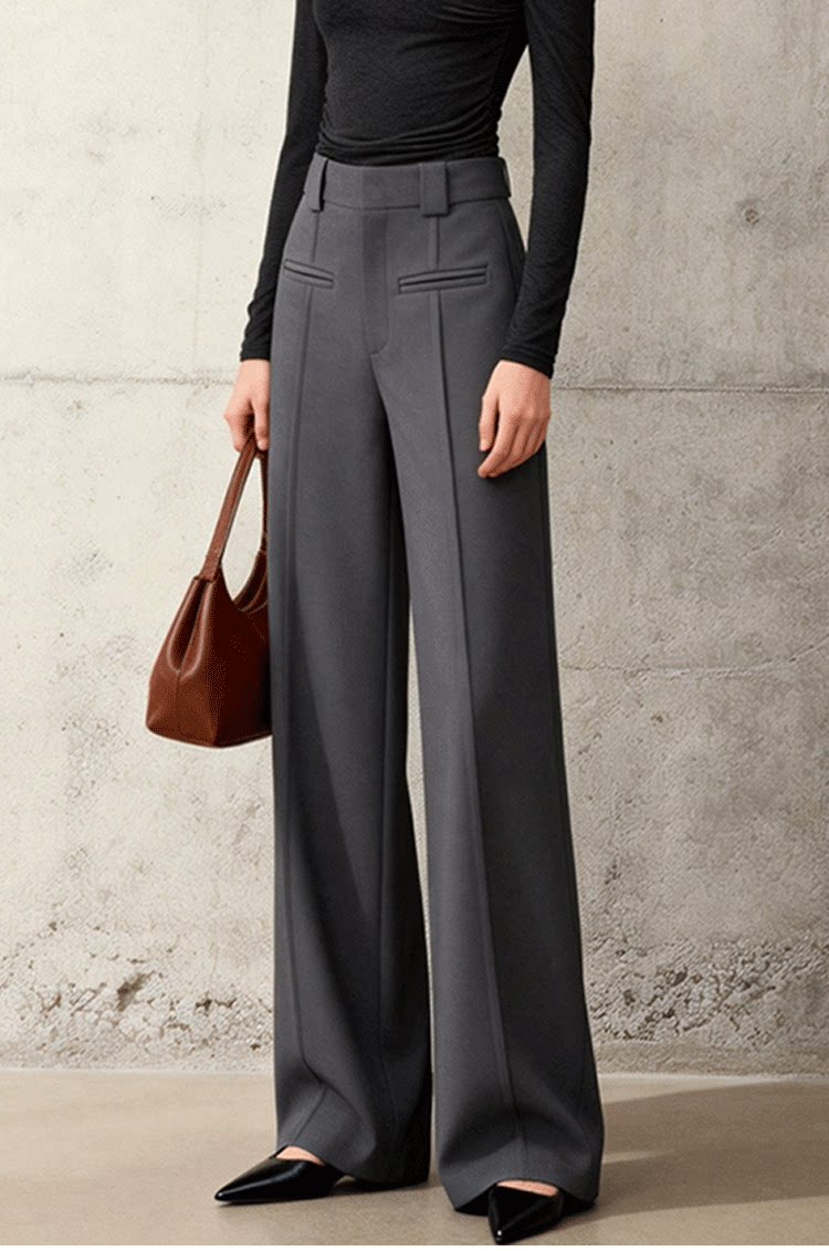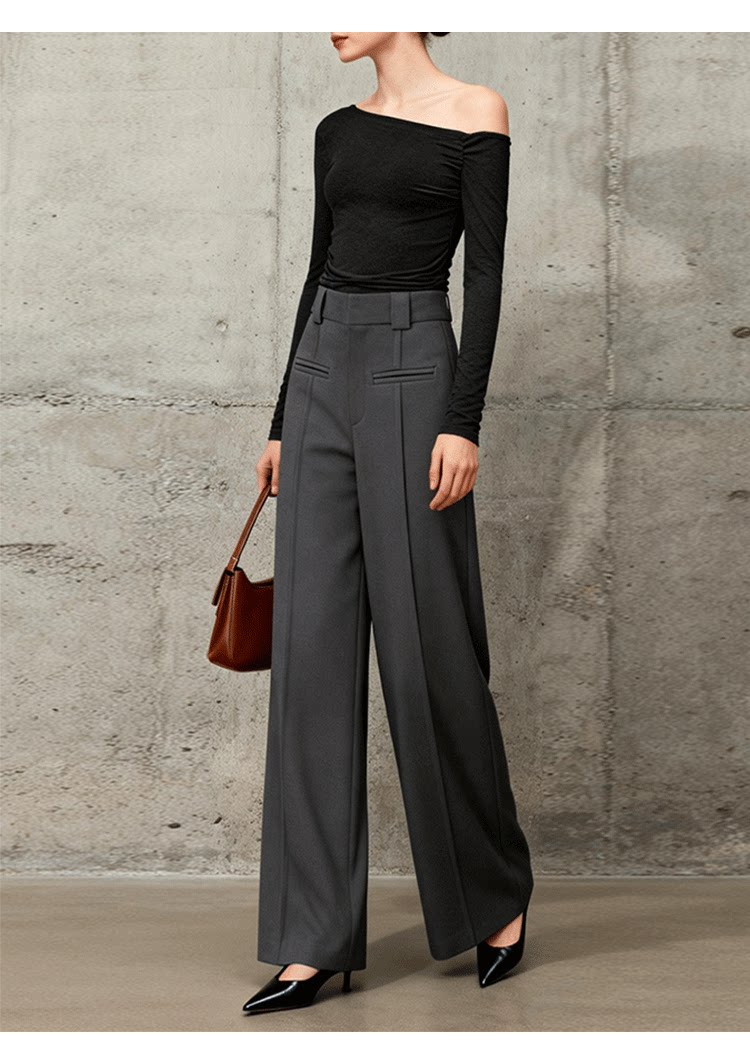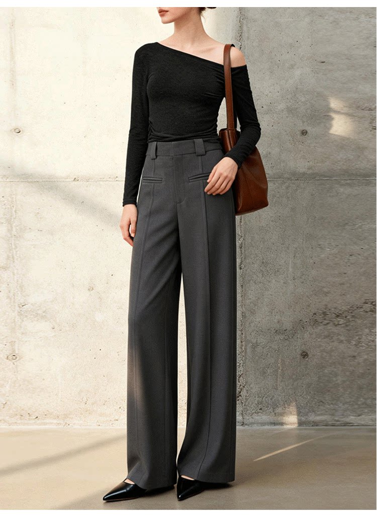 ブルベファッションにぴったりな、洗練された高腰デザインのワイドパンツです。