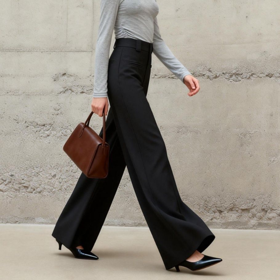腰高の位置から始まるスタイルで、脚長効果と上品な印象を演出