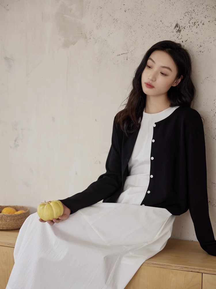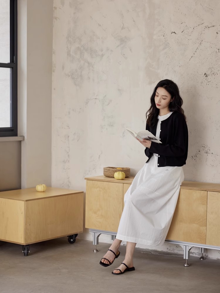 ブルベファッションにぴったりの涼やかな素材感で、一枚で着映えするロング丈が魅力的です。